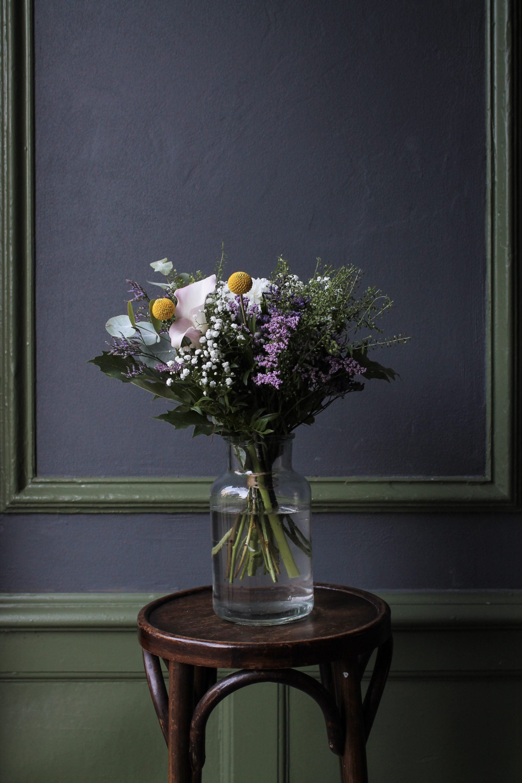 Buketten laves ud fra seasons blomster, og med et vildt udtryk der passer til vesterbros stil. Derfor vil de afvige fra billedet, men vi vil altid bestræbe på matche så meget som muligt. I altid velkomne til at ringe til os og høre hvilke blomster der er på lager.